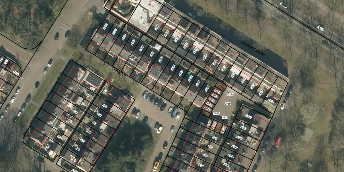 Het perceel waarop Terrahof 13 staat heeft een oppervlakte van 152 m². Dit is een middelgroot perceel. De perceeloppervlakte wordt geregistreerd door het Kadaster. Gedetailleerde informatie over de maten van dit perceel kunt u vinden in het rapport Kadastrale kaart met maatvoering van Terrahof 13.