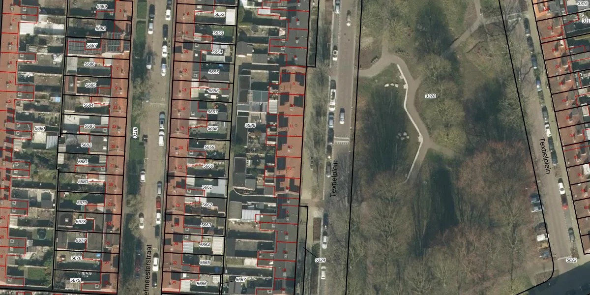 Textielplein 12 is gelegen op kadastraal perceel TBG01O5586. Deze kadastrale aanduiding is uniek en wordt gebruikt door het Kadaster om eigendomsrechten en andere zakelijke rechten vast te leggen. Het perceel maakt onderdeel uit van de kadastrale gemeente Tilburg.