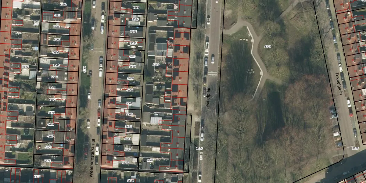 Textielplein 13 is gelegen op kadastraal perceel TBG01O5586. Deze kadastrale aanduiding is uniek en wordt gebruikt door het Kadaster om eigendomsrechten en andere zakelijke rechten vast te leggen. Het perceel maakt onderdeel uit van de kadastrale gemeente Tilburg.