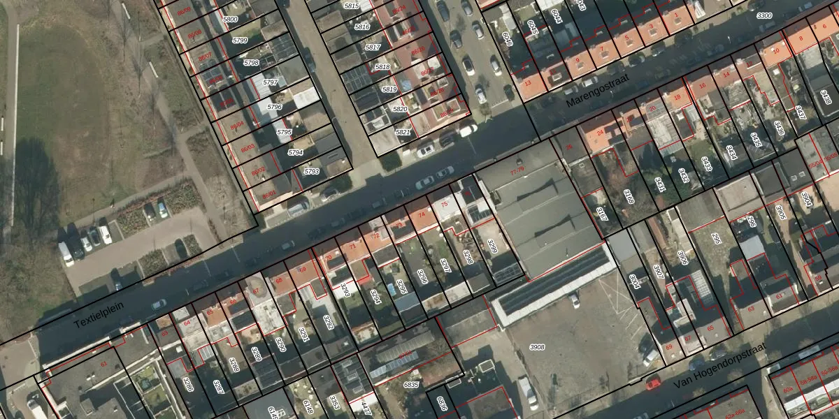 Textielplein 74 is gelegen op kadastraal perceel TBG01O3297. Deze kadastrale aanduiding is uniek en wordt gebruikt door het Kadaster om eigendomsrechten en andere zakelijke rechten vast te leggen. Het perceel maakt onderdeel uit van de kadastrale gemeente Tilburg.