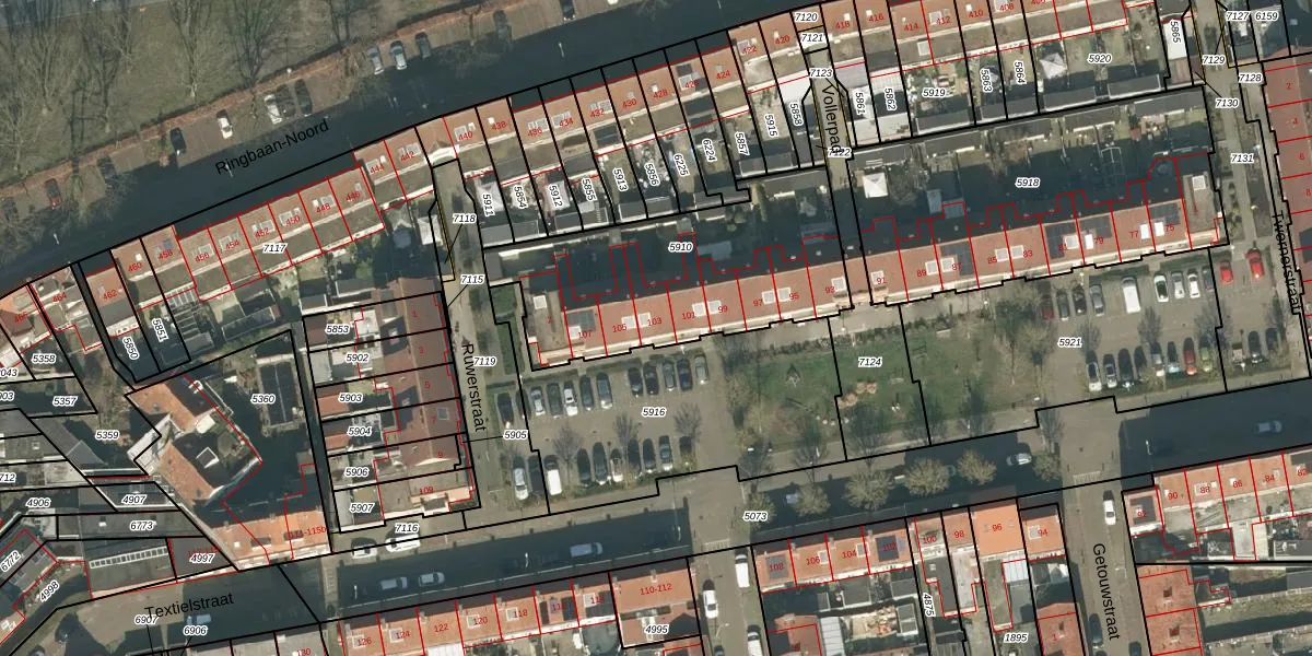Textielstraat 103 is gelegen op kadastraal perceel TBG01O5910. Deze kadastrale aanduiding is uniek en wordt gebruikt door het Kadaster om eigendomsrechten en andere zakelijke rechten vast te leggen. Het perceel maakt onderdeel uit van de kadastrale gemeente Tilburg.