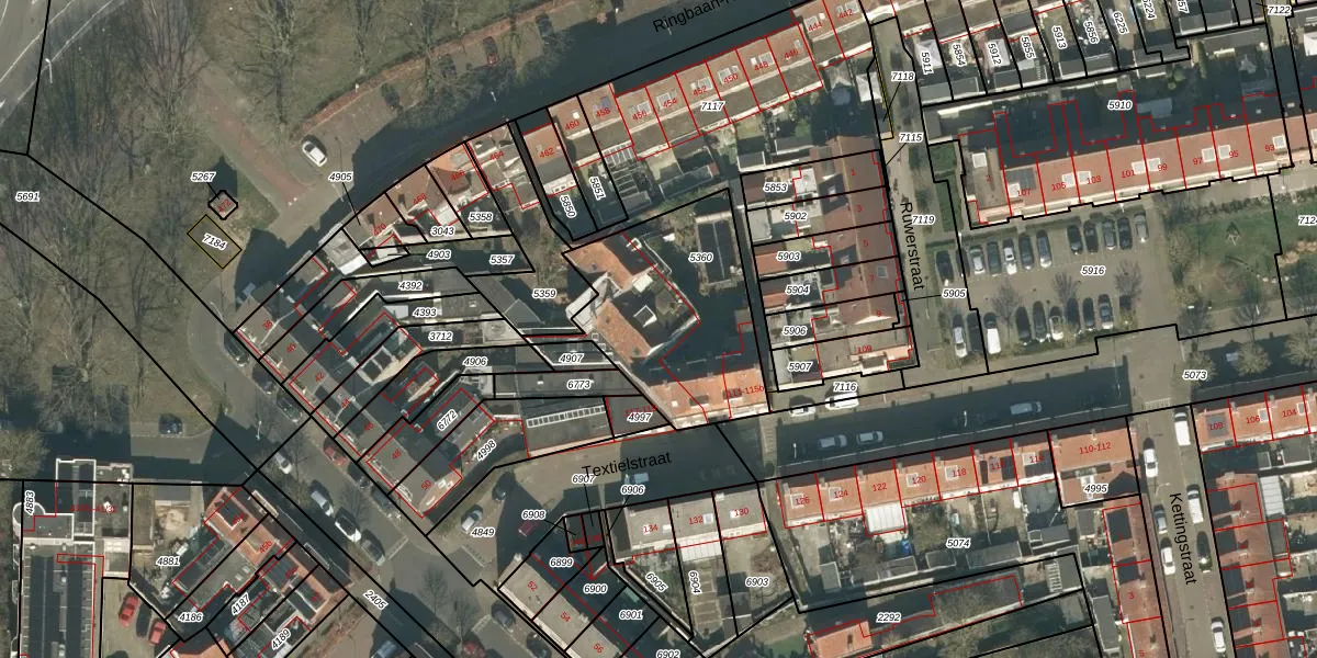 Textielstraat 113-b is gelegen op kadastraal perceel TBG01O5360. Deze kadastrale aanduiding is uniek en wordt gebruikt door het Kadaster om eigendomsrechten en andere zakelijke rechten vast te leggen. Het perceel maakt onderdeel uit van de kadastrale gemeente Tilburg.