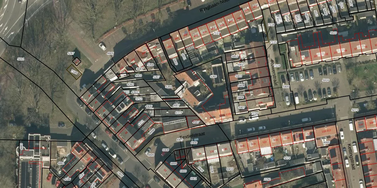 Het perceel waarop Textielstraat 113-d staat heeft een oppervlakte van 730 m². Dit is een groot perceel. De perceeloppervlakte wordt geregistreerd door het Kadaster. Gedetailleerde informatie over de maten van dit perceel kunt u vinden in het rapport Kadastrale kaart met maatvoering van Textielstraat 113-d.