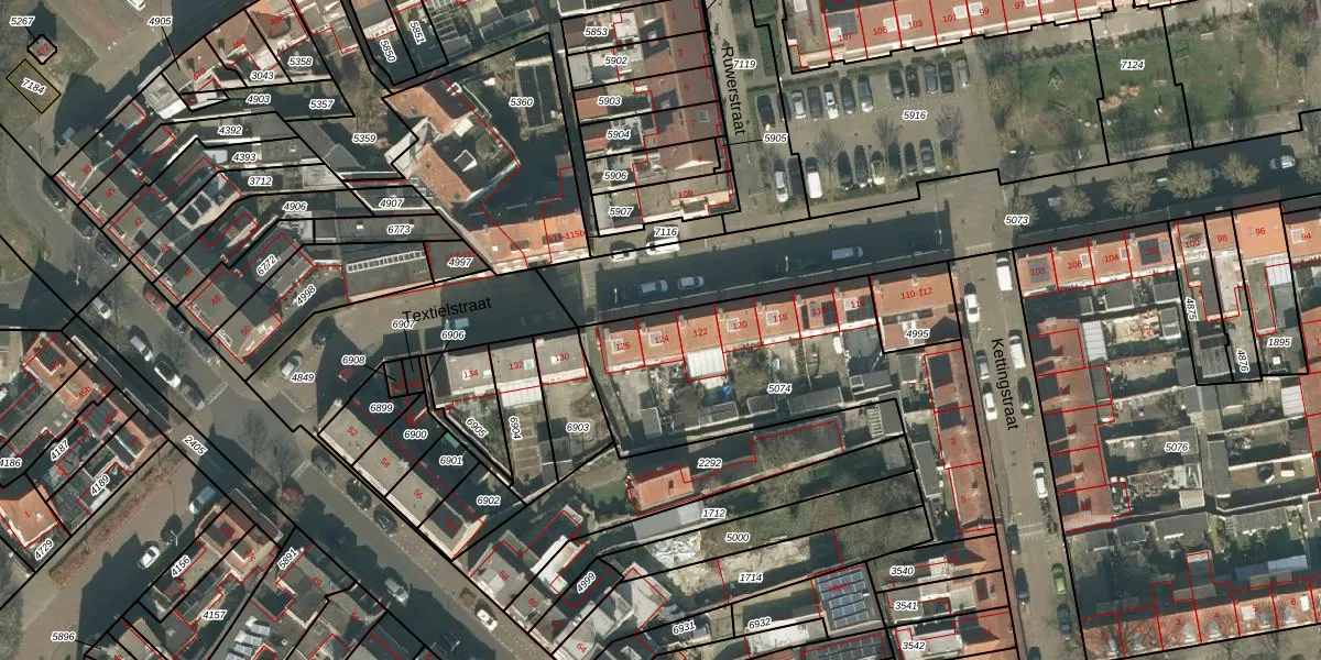 Textielstraat 124 is gelegen op kadastraal perceel TBG01O5074. Deze kadastrale aanduiding is uniek en wordt gebruikt door het Kadaster om eigendomsrechten en andere zakelijke rechten vast te leggen. Het perceel maakt onderdeel uit van de kadastrale gemeente Tilburg.