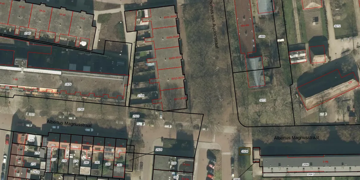 Het perceel waarop Thomas van Aquinostraat 35-17 staat heeft een oppervlakte van 1560 m². Dit is een zeer groot perceel. De perceeloppervlakte wordt geregistreerd door het Kadaster. Gedetailleerde informatie over de maten van dit perceel kunt u vinden in het rapport Kadastrale kaart met maatvoering van Thomas van Aquinostraat 35-17.
