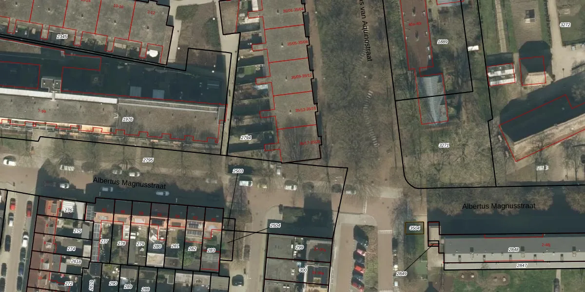 Thomas van Aquinostraat 35-19 is gelegen op kadastraal perceel TBG01AC2794. Deze kadastrale aanduiding is uniek en wordt gebruikt door het Kadaster om eigendomsrechten en andere zakelijke rechten vast te leggen. Het perceel maakt onderdeel uit van de kadastrale gemeente Tilburg.