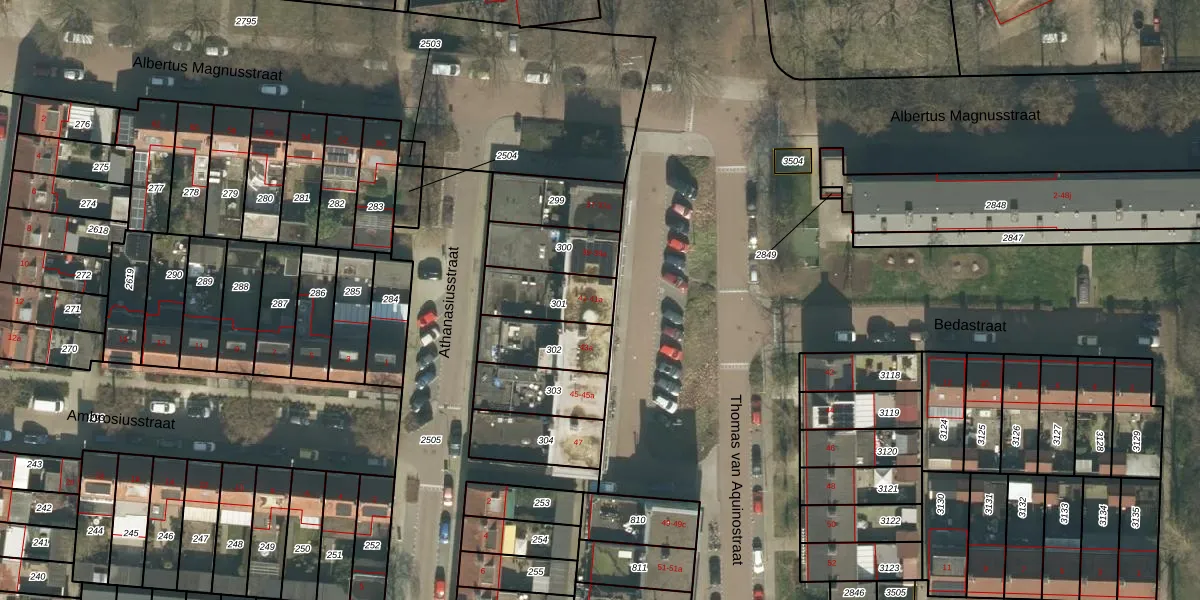 Thomas van Aquinostraat 41 is gelegen op kadastraal perceel TBG01AC301. Deze kadastrale aanduiding is uniek en wordt gebruikt door het Kadaster om eigendomsrechten en andere zakelijke rechten vast te leggen. Het perceel maakt onderdeel uit van de kadastrale gemeente Tilburg.