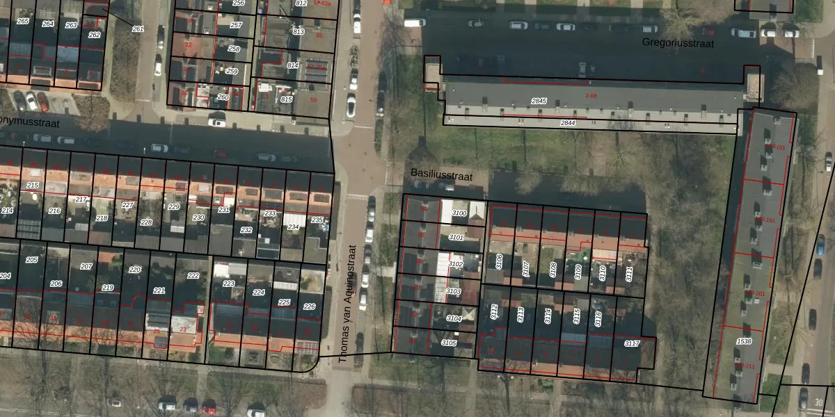 Thomas van Aquinostraat 54 is gelegen op kadastraal perceel TBG01AC3100. Deze kadastrale aanduiding is uniek en wordt gebruikt door het Kadaster om eigendomsrechten en andere zakelijke rechten vast te leggen. Het perceel maakt onderdeel uit van de kadastrale gemeente Tilburg.