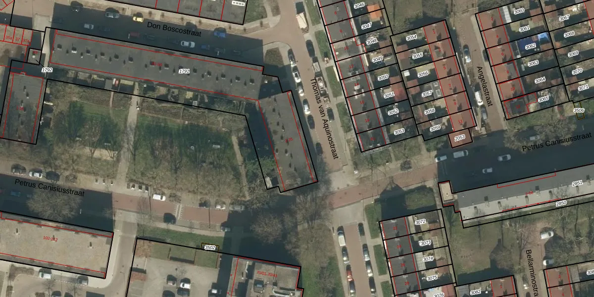 Het perceel waarop Thomas van Aquinostraat 9 staat heeft een oppervlakte van 2155 m². Dit is een zeer groot perceel. De perceeloppervlakte wordt geregistreerd door het Kadaster. Gedetailleerde informatie over de maten van dit perceel kunt u vinden in het rapport Kadastrale kaart met maatvoering van Thomas van Aquinostraat 9.