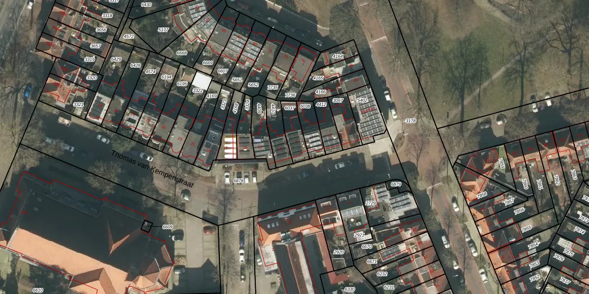 Thomas van Kempenstraat 9 is gelegen op kadastraal perceel TBG01P6037. Deze kadastrale aanduiding is uniek en wordt gebruikt door het Kadaster om eigendomsrechten en andere zakelijke rechten vast te leggen. Het perceel maakt onderdeel uit van de kadastrale gemeente Tilburg.