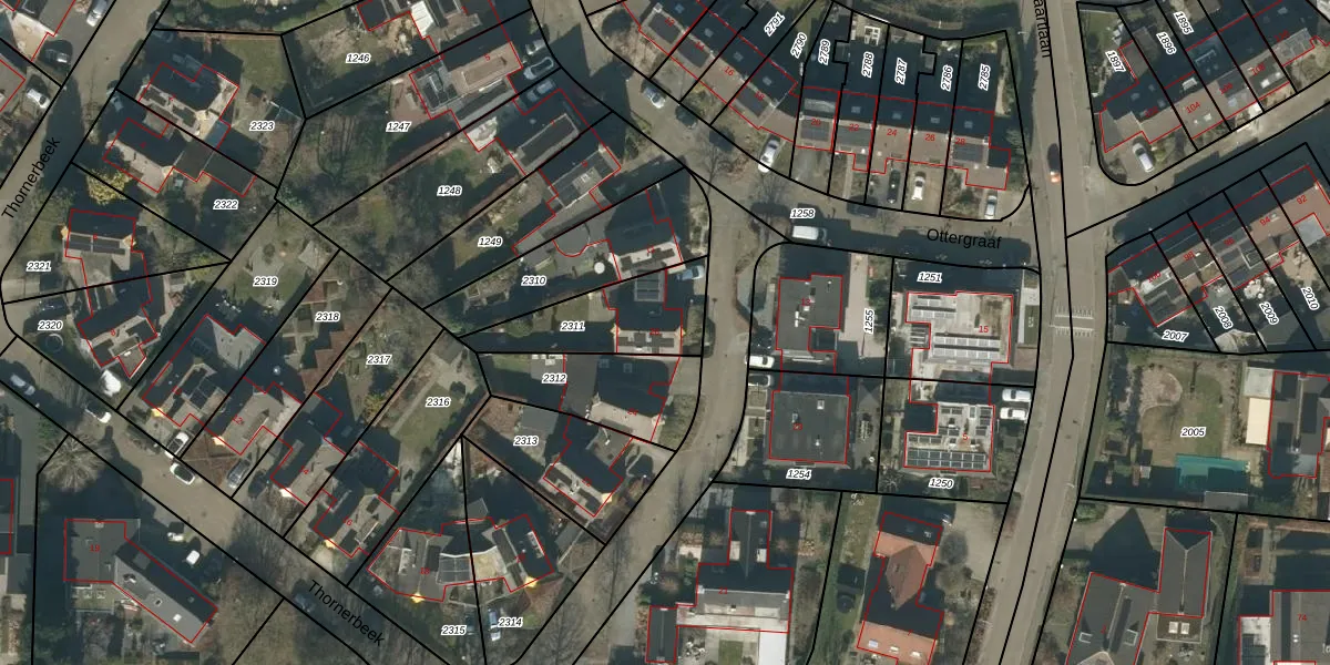 Het perceel waarop Thornerbeek 26 staat heeft een oppervlakte van 322 m². Dit is een groot perceel. De perceeloppervlakte wordt geregistreerd door het Kadaster. Gedetailleerde informatie over de maten van dit perceel kunt u vinden in het rapport Kadastrale kaart met maatvoering van Thornerbeek 26.