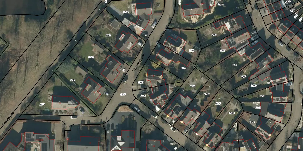 Thornerbeek 6 is gelegen op kadastraal perceel TBG01AA2321. Deze kadastrale aanduiding is uniek en wordt gebruikt door het Kadaster om eigendomsrechten en andere zakelijke rechten vast te leggen. Het perceel maakt onderdeel uit van de kadastrale gemeente Tilburg.