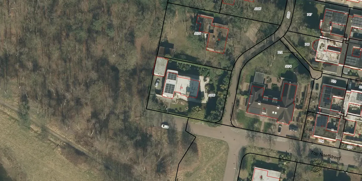 Het perceel waarop Top Naeffdreef 25 staat heeft een oppervlakte van 1267 m². Dit is een zeer groot perceel. De perceeloppervlakte wordt geregistreerd door het Kadaster. Gedetailleerde informatie over de maten van dit perceel kunt u vinden in het rapport Kadastrale kaart met maatvoering van Top Naeffdreef 25.