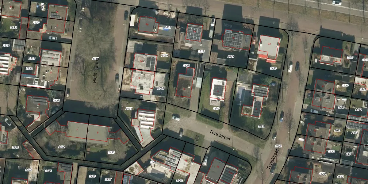 Torteldreef 5 is gelegen op kadastraal perceel TBG01AC1834. Deze kadastrale aanduiding is uniek en wordt gebruikt door het Kadaster om eigendomsrechten en andere zakelijke rechten vast te leggen. Het perceel maakt onderdeel uit van de kadastrale gemeente Tilburg.