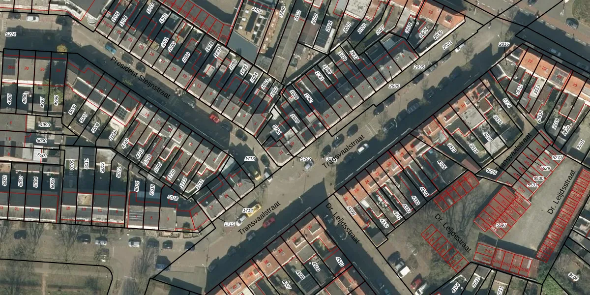 Transvaalstraat 19 is gelegen op kadastraal perceel TBG01R5791. Deze kadastrale aanduiding is uniek en wordt gebruikt door het Kadaster om eigendomsrechten en andere zakelijke rechten vast te leggen. Het perceel maakt onderdeel uit van de kadastrale gemeente Tilburg.