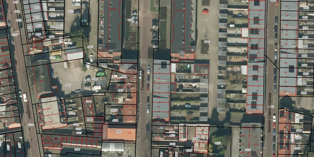 Trompstraat 32 is gelegen op kadastraal perceel TBG01R6481. Deze kadastrale aanduiding is uniek en wordt gebruikt door het Kadaster om eigendomsrechten en andere zakelijke rechten vast te leggen. Het perceel maakt onderdeel uit van de kadastrale gemeente Tilburg.
