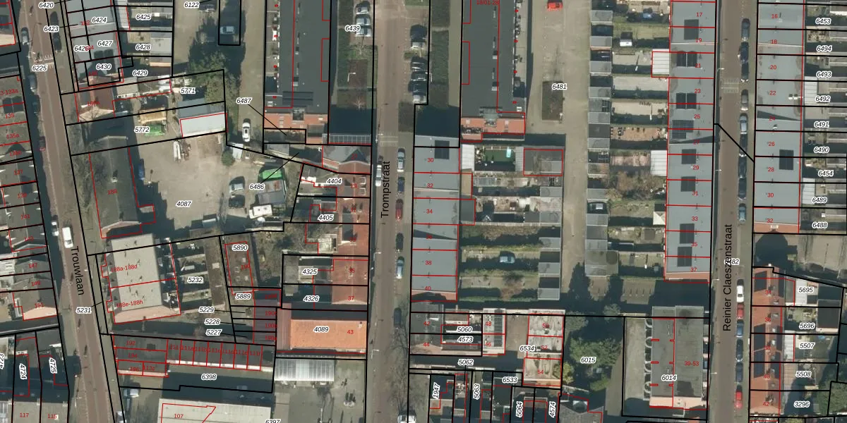 Trompstraat 34 is gelegen op kadastraal perceel TBG01R6481. Deze kadastrale aanduiding is uniek en wordt gebruikt door het Kadaster om eigendomsrechten en andere zakelijke rechten vast te leggen. Het perceel maakt onderdeel uit van de kadastrale gemeente Tilburg.