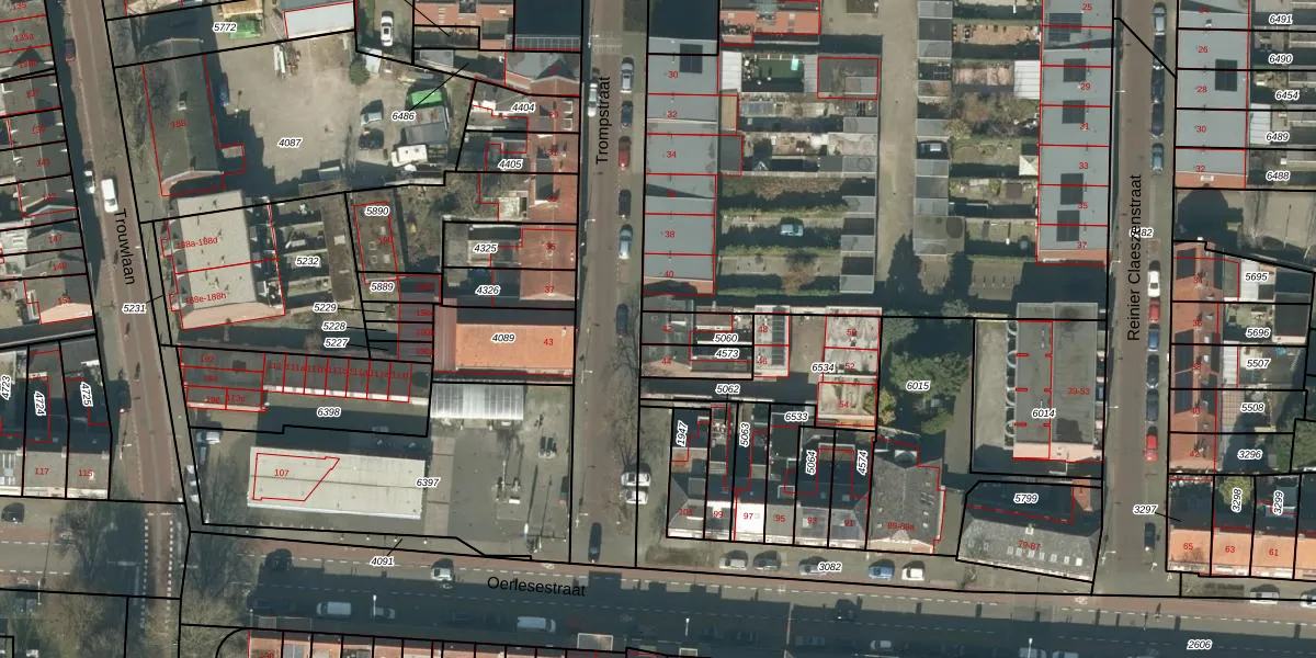 Trompstraat 42 is gelegen op kadastraal perceel TBG01R5060. Deze kadastrale aanduiding is uniek en wordt gebruikt door het Kadaster om eigendomsrechten en andere zakelijke rechten vast te leggen. Het perceel maakt onderdeel uit van de kadastrale gemeente Tilburg.