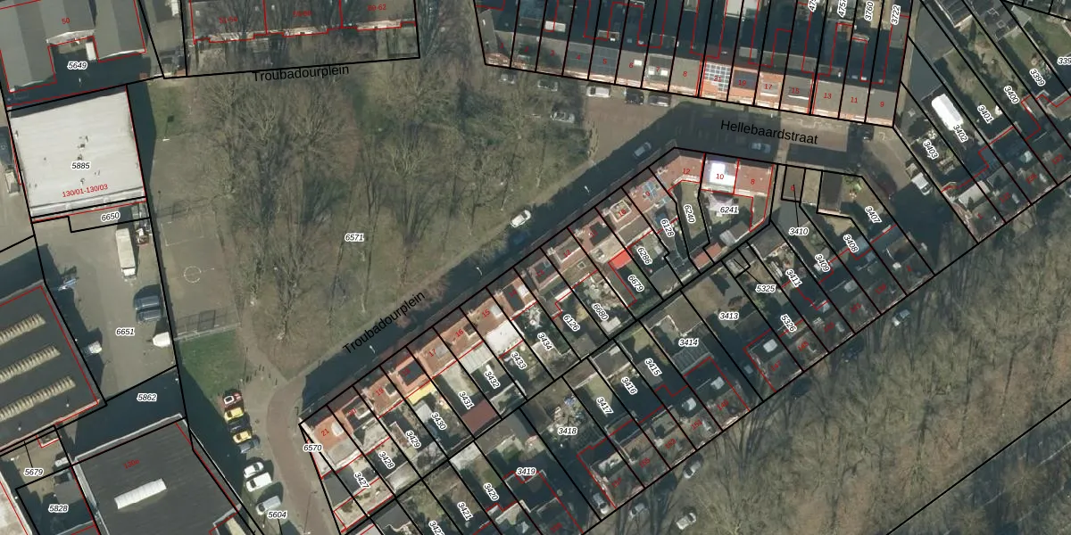 Troubadourplein 13 is gelegen op kadastraal perceel TBG01R6126. Deze kadastrale aanduiding is uniek en wordt gebruikt door het Kadaster om eigendomsrechten en andere zakelijke rechten vast te leggen. Het perceel maakt onderdeel uit van de kadastrale gemeente Tilburg.