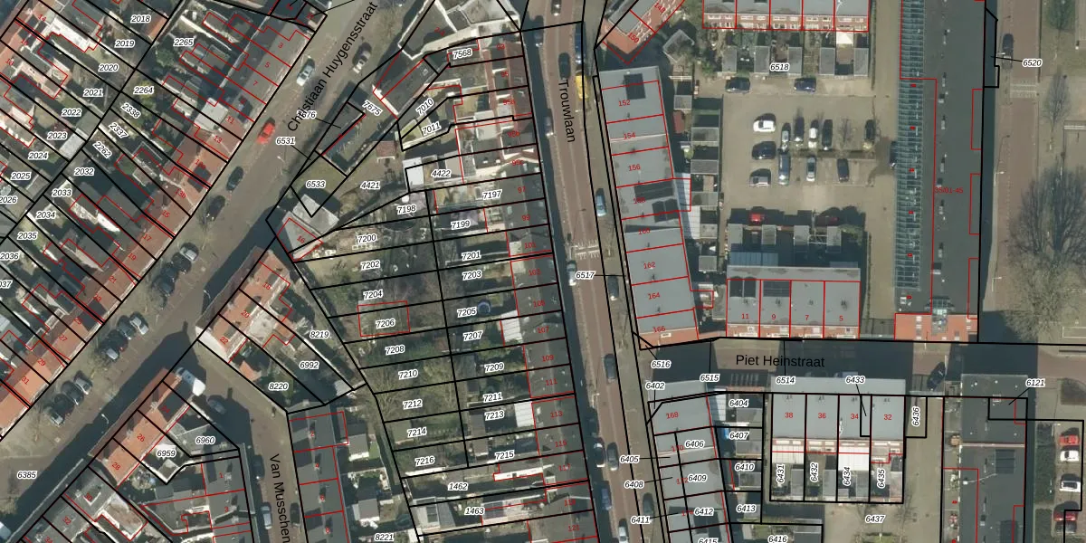 Het perceel waarop Trouwlaan 103 staat heeft een oppervlakte van 121 m². Dit is een middelgroot perceel. De perceeloppervlakte wordt geregistreerd door het Kadaster. Gedetailleerde informatie over de maten van dit perceel kunt u vinden in het rapport Kadastrale kaart met maatvoering van Trouwlaan 103.
