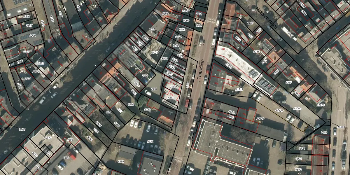 Het perceel waarop Trouwlaan 13 staat heeft een oppervlakte van 69 m². Dit is een klein perceel. De perceeloppervlakte wordt geregistreerd door het Kadaster. Gedetailleerde informatie over de maten van dit perceel kunt u vinden in het rapport Kadastrale kaart met maatvoering van Trouwlaan 13.