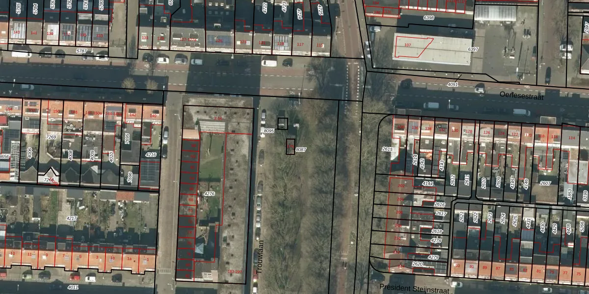 Trouwlaan 175 is gelegen op kadastraal perceel TBG01Q8087. Deze kadastrale aanduiding is uniek en wordt gebruikt door het Kadaster om eigendomsrechten en andere zakelijke rechten vast te leggen. Het perceel maakt onderdeel uit van de kadastrale gemeente Tilburg.