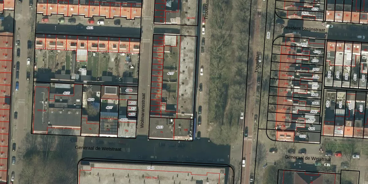 Trouwlaan 239 is gelegen op kadastraal perceel TBG01Q4277. Deze kadastrale aanduiding is uniek en wordt gebruikt door het Kadaster om eigendomsrechten en andere zakelijke rechten vast te leggen. Het perceel maakt onderdeel uit van de kadastrale gemeente Tilburg.