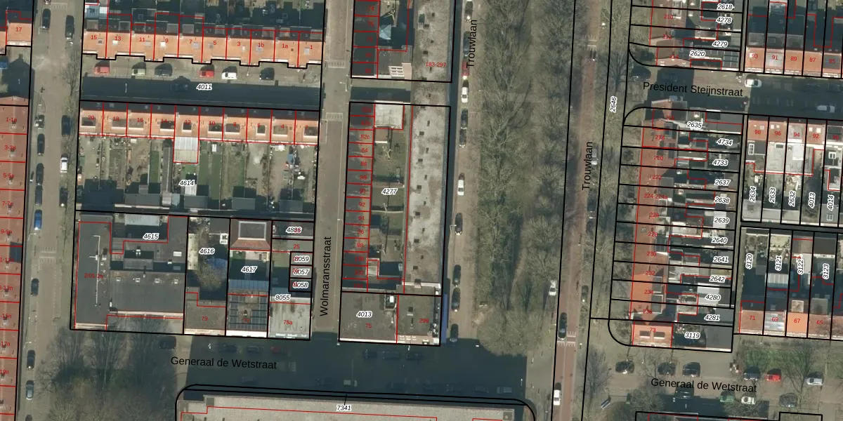 Trouwlaan 241 is gelegen op kadastraal perceel TBG01Q4277. Deze kadastrale aanduiding is uniek en wordt gebruikt door het Kadaster om eigendomsrechten en andere zakelijke rechten vast te leggen. Het perceel maakt onderdeel uit van de kadastrale gemeente Tilburg.