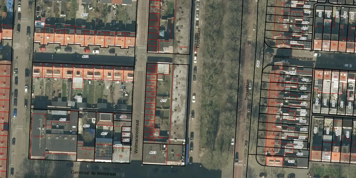 Trouwlaan 245 is gelegen op kadastraal perceel TBG01Q4277. Deze kadastrale aanduiding is uniek en wordt gebruikt door het Kadaster om eigendomsrechten en andere zakelijke rechten vast te leggen. Het perceel maakt onderdeel uit van de kadastrale gemeente Tilburg.