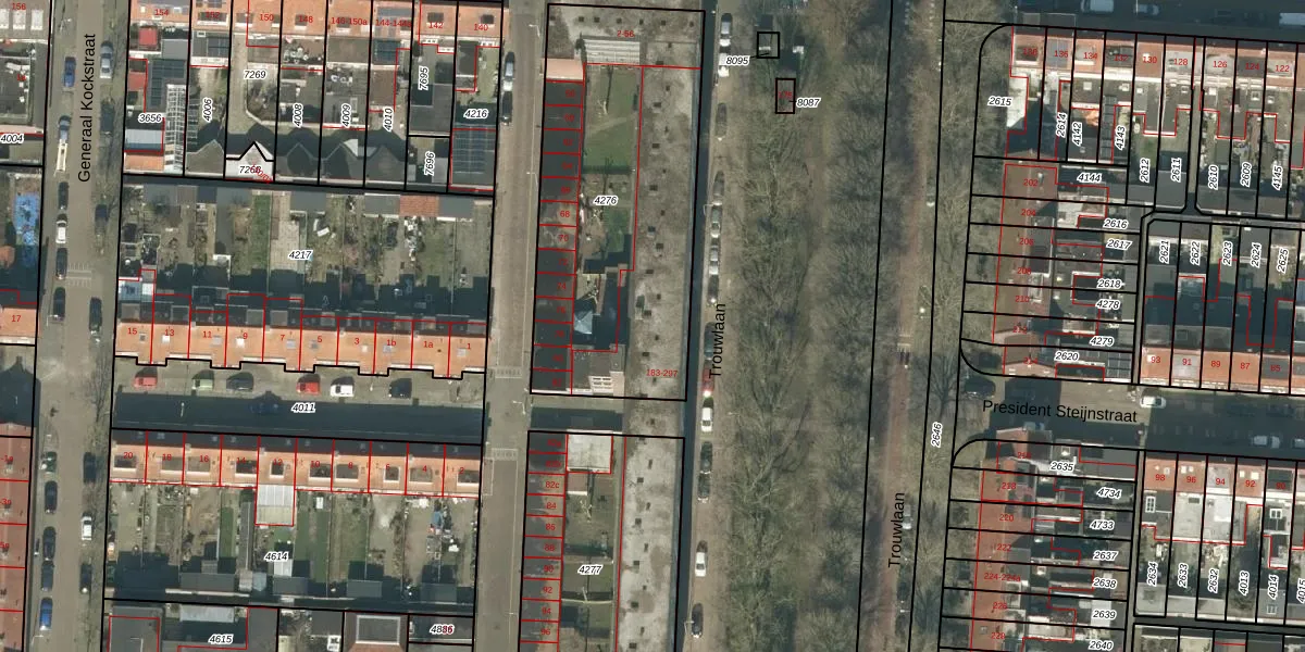Trouwlaan 255 is gelegen op kadastraal perceel TBG01Q4276. Deze kadastrale aanduiding is uniek en wordt gebruikt door het Kadaster om eigendomsrechten en andere zakelijke rechten vast te leggen. Het perceel maakt onderdeel uit van de kadastrale gemeente Tilburg.
