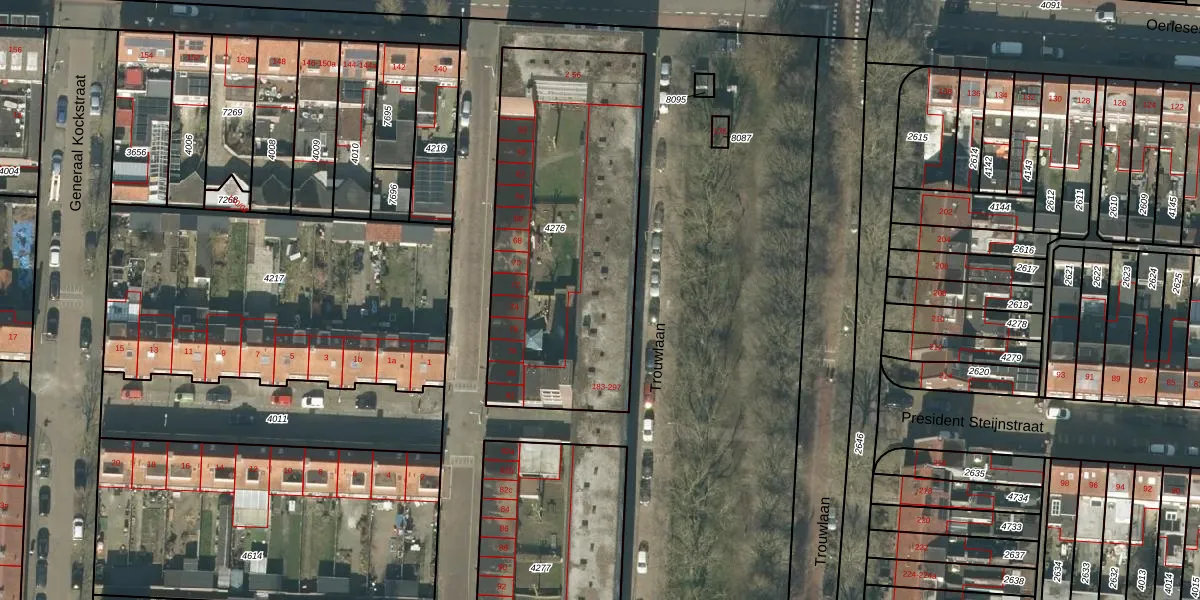 Trouwlaan 257 is gelegen op kadastraal perceel TBG01Q4276. Deze kadastrale aanduiding is uniek en wordt gebruikt door het Kadaster om eigendomsrechten en andere zakelijke rechten vast te leggen. Het perceel maakt onderdeel uit van de kadastrale gemeente Tilburg.