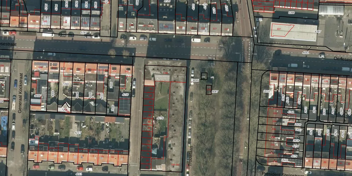 Trouwlaan 265 is gelegen op kadastraal perceel TBG01Q4276. Deze kadastrale aanduiding is uniek en wordt gebruikt door het Kadaster om eigendomsrechten en andere zakelijke rechten vast te leggen. Het perceel maakt onderdeel uit van de kadastrale gemeente Tilburg.