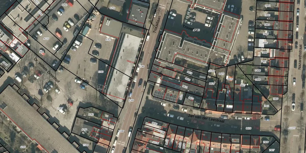 Trouwlaan 64 is gelegen op kadastraal perceel TBG01M8421. Deze kadastrale aanduiding is uniek en wordt gebruikt door het Kadaster om eigendomsrechten en andere zakelijke rechten vast te leggen. Het perceel maakt onderdeel uit van de kadastrale gemeente Tilburg.