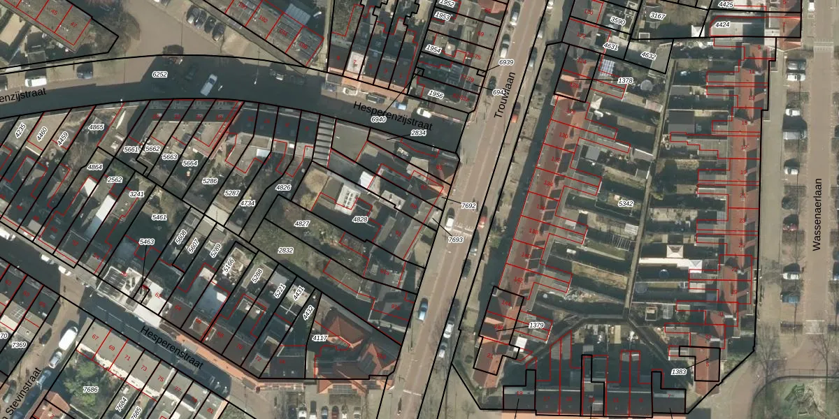 Het perceel waarop Trouwlaan 89 staat heeft een oppervlakte van 185 m². Dit is een middelgroot perceel. De perceeloppervlakte wordt geregistreerd door het Kadaster. Gedetailleerde informatie over de maten van dit perceel kunt u vinden in het rapport Kadastrale kaart met maatvoering van Trouwlaan 89.