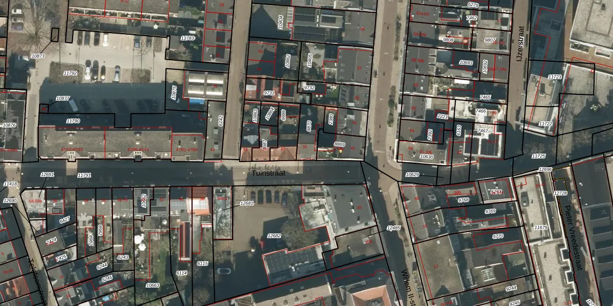 Tuinstraat 35 is gelegen op kadastraal perceel TBG01M8870. Deze kadastrale aanduiding is uniek en wordt gebruikt door het Kadaster om eigendomsrechten en andere zakelijke rechten vast te leggen. Het perceel maakt onderdeel uit van de kadastrale gemeente Tilburg.