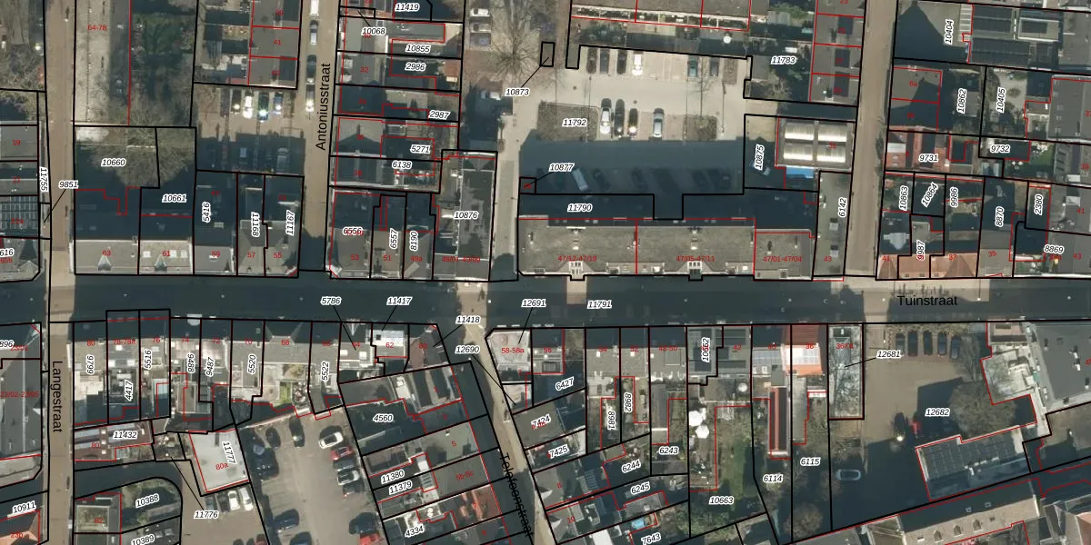 Tuinstraat 47-13 is gelegen op kadastraal perceel TBG01M11790. Deze kadastrale aanduiding is uniek en wordt gebruikt door het Kadaster om eigendomsrechten en andere zakelijke rechten vast te leggen. Het perceel maakt onderdeel uit van de kadastrale gemeente Tilburg.
