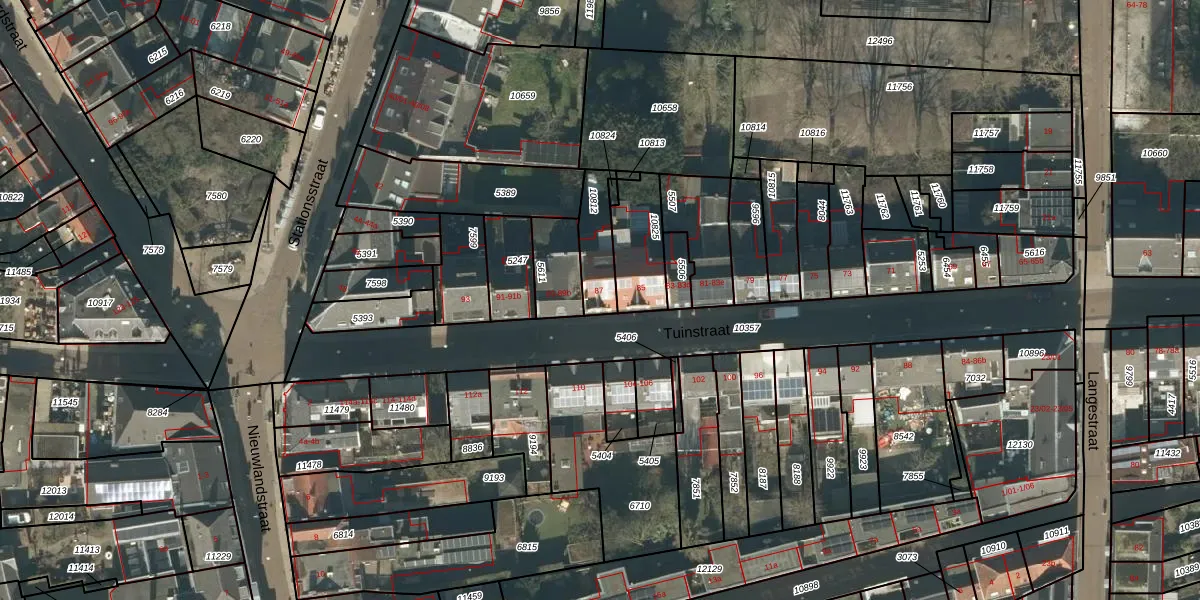 Tuinstraat 87 is gelegen op kadastraal perceel TBG01M10812. Deze kadastrale aanduiding is uniek en wordt gebruikt door het Kadaster om eigendomsrechten en andere zakelijke rechten vast te leggen. Het perceel maakt onderdeel uit van de kadastrale gemeente Tilburg.