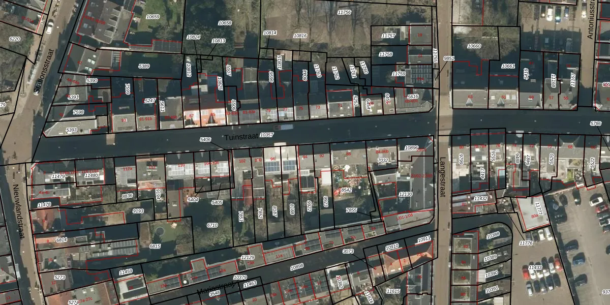 Het perceel waarop Tuinstraat 94 staat heeft een oppervlakte van 170 m². Dit is een middelgroot perceel. De perceeloppervlakte wordt geregistreerd door het Kadaster. Gedetailleerde informatie over de maten van dit perceel kunt u vinden in het rapport Kadastrale kaart met maatvoering van Tuinstraat 94.