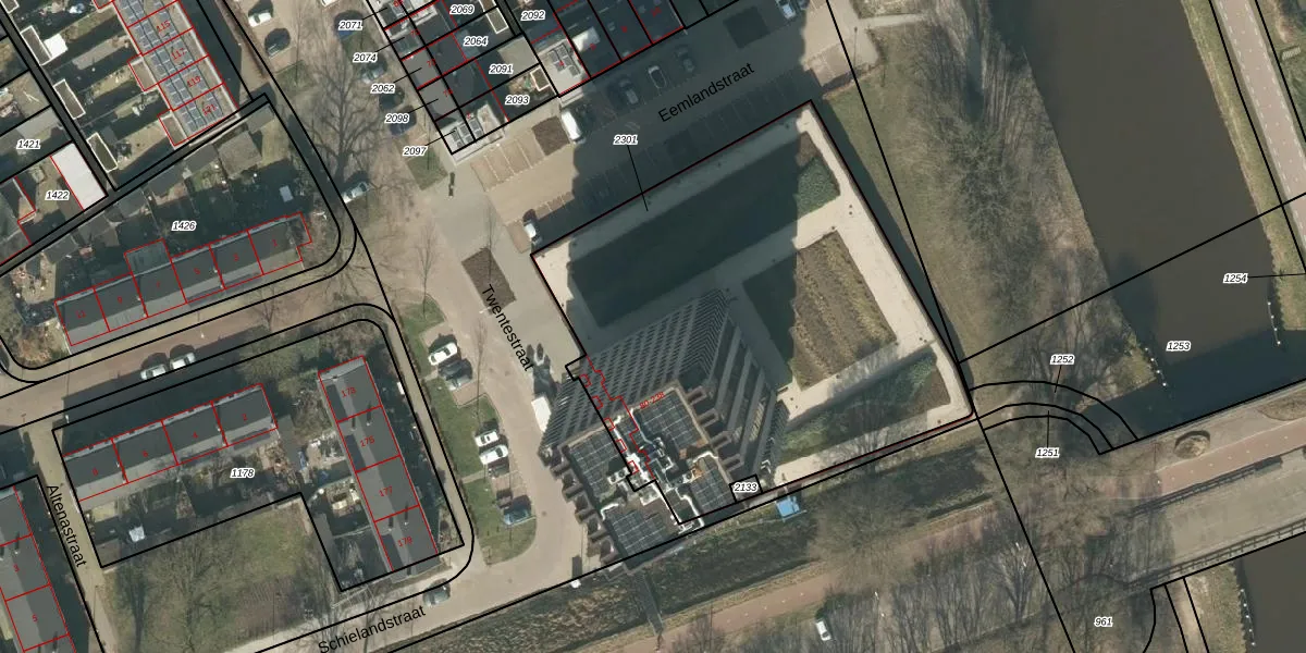 Het perceel waarop Twentestraat 90 staat heeft een oppervlakte van 2530 m². Dit is een zeer groot perceel. De perceeloppervlakte wordt geregistreerd door het Kadaster. Gedetailleerde informatie over de maten van dit perceel kunt u vinden in het rapport Kadastrale kaart met maatvoering van Twentestraat 90.