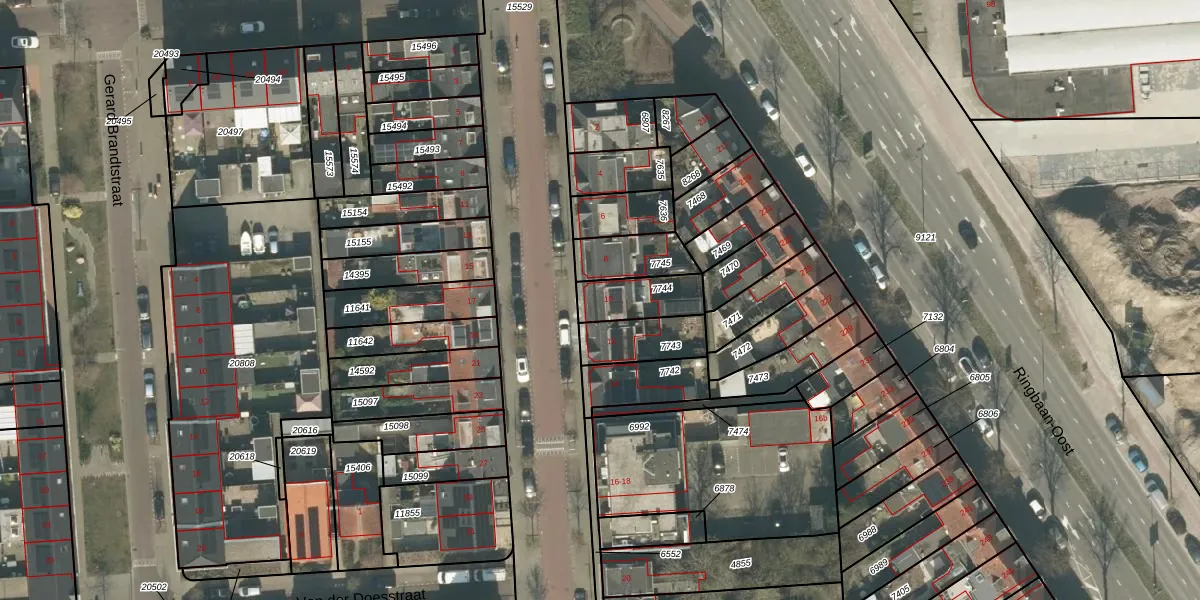 Het perceel waarop het adres ligt is TBG01-B-7744. De afkorting 'TBG01' staat voor kadastrale gemeente Tilburg. Het perceel is 146 m² groot. Dat is kleiner dan de gemiddelde perceeloppervlakte in Tilburg, dat op 1264,33 m² ligt. Het grootste perceel in de kadastrale gemeente is 87,4 ha. Het kleinste perceel heeft een oppervlakte van 0 m². Er zijn geen andere adressen aanwezig op het perceel. De huidige grenzen van het perceel zijn digitaal in de Basisregistratie Kadaster (BRK) geregistreerd op 13-02-2006.