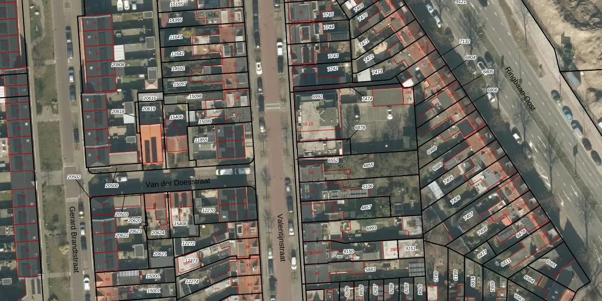 Het perceel waarop Valentijnstraat 18 staat heeft een oppervlakte van 92 m². Dit is een klein perceel. De perceeloppervlakte wordt geregistreerd door het Kadaster. Gedetailleerde informatie over de maten van dit perceel kunt u vinden in het rapport Kadastrale kaart met maatvoering van Valentijnstraat 18.
