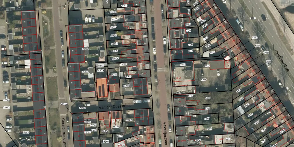 Het perceel waarop Valentijnstraat 27 staat heeft een oppervlakte van 106 m². Dit is een middelgroot perceel. De perceeloppervlakte wordt geregistreerd door het Kadaster. Gedetailleerde informatie over de maten van dit perceel kunt u vinden in het rapport Kadastrale kaart met maatvoering van Valentijnstraat 27.