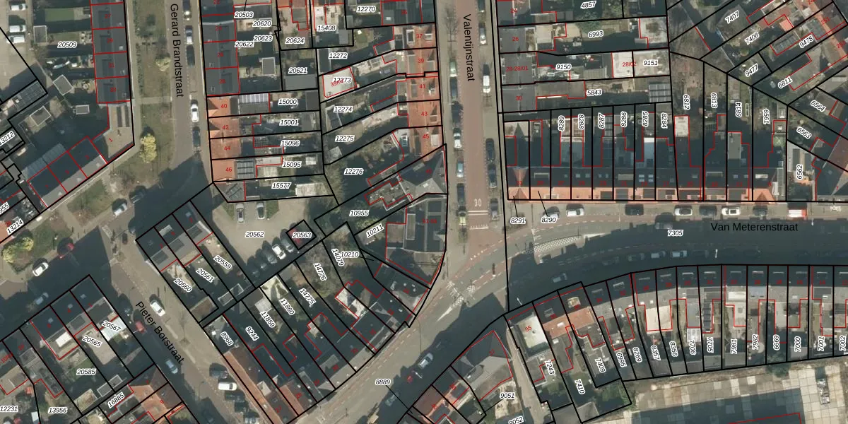 Het perceel waarop Valentijnstraat 57 staat heeft een oppervlakte van 277 m². Dit is een middelgroot perceel. De perceeloppervlakte wordt geregistreerd door het Kadaster. Gedetailleerde informatie over de maten van dit perceel kunt u vinden in het rapport Kadastrale kaart met maatvoering van Valentijnstraat 57.