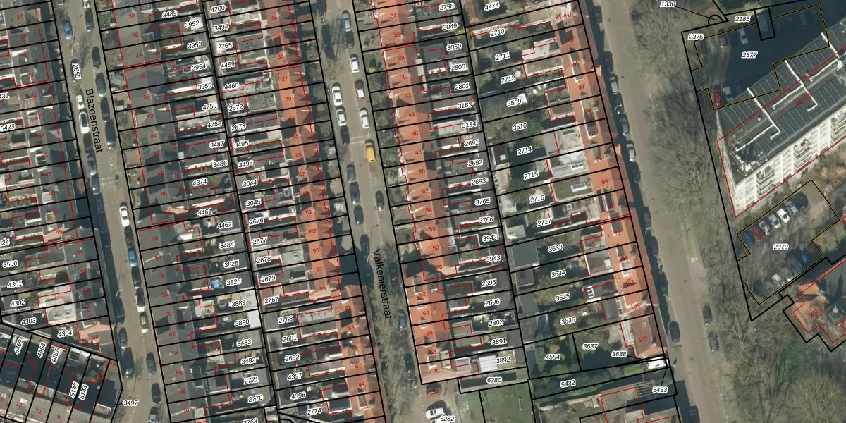 Het perceel waarop Valkenierstraat 54 staat heeft een oppervlakte van 116 m². Dit is een middelgroot perceel. De perceeloppervlakte wordt geregistreerd door het Kadaster. Gedetailleerde informatie over de maten van dit perceel kunt u vinden in het rapport Kadastrale kaart met maatvoering van Valkenierstraat 54.