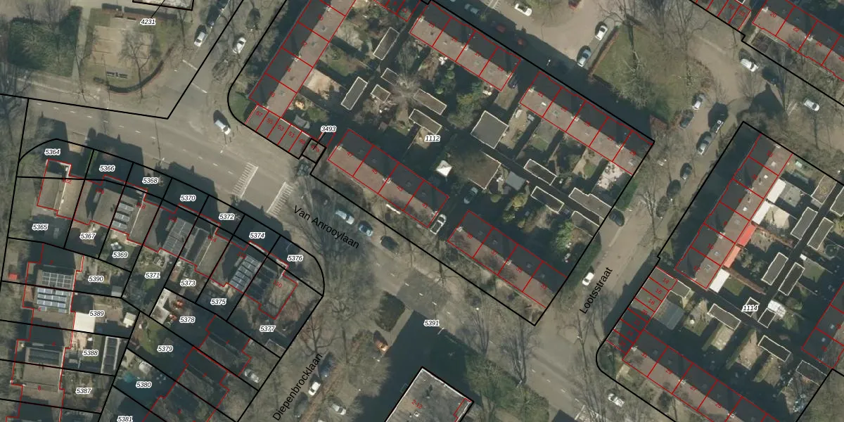 Het perceel waarop Van Anrooylaan 41 staat heeft een oppervlakte van 4564 m². Dit is een zeer groot perceel. De perceeloppervlakte wordt geregistreerd door het Kadaster. Gedetailleerde informatie over de maten van dit perceel kunt u vinden in het rapport Kadastrale kaart met maatvoering van Van Anrooylaan 41.