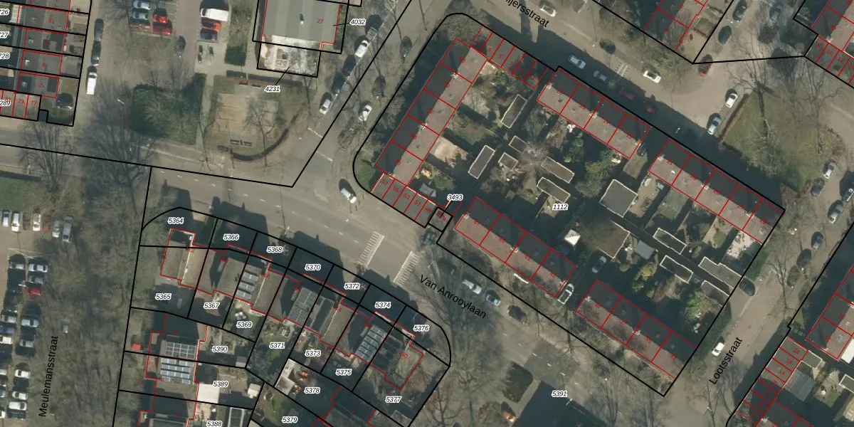 Het perceel waarop Van Anrooylaan 49 staat heeft een oppervlakte van 4564 m². Dit is een zeer groot perceel. De perceeloppervlakte wordt geregistreerd door het Kadaster. Gedetailleerde informatie over de maten van dit perceel kunt u vinden in het rapport Kadastrale kaart met maatvoering van Van Anrooylaan 49.