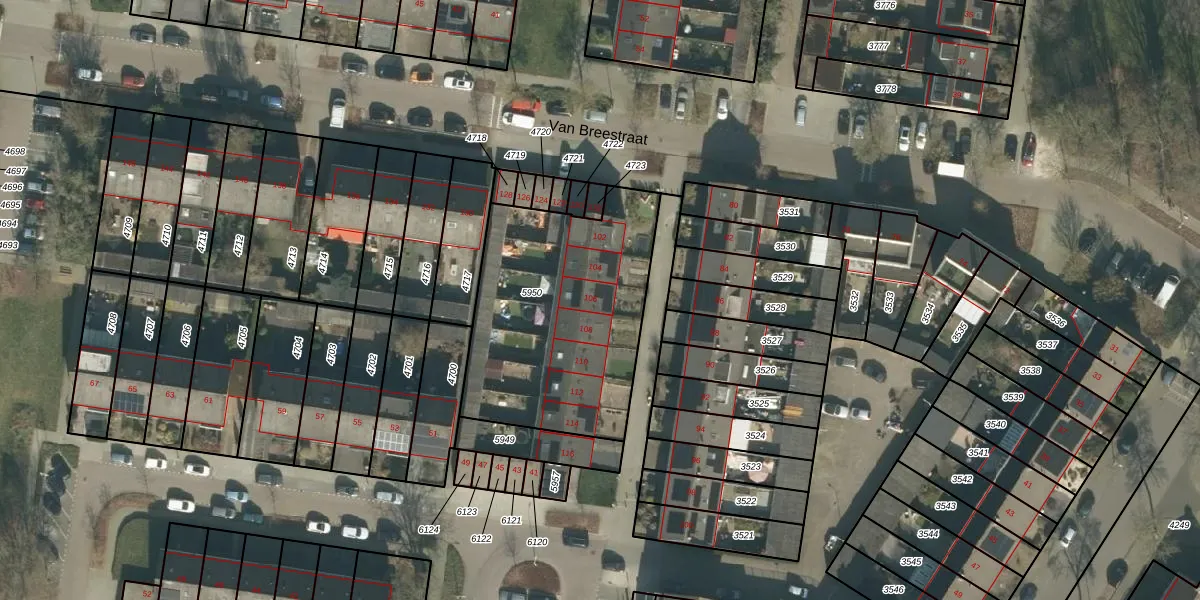 Van Breestraat 106 is gelegen op kadastraal perceel TBG01S5950. Deze kadastrale aanduiding is uniek en wordt gebruikt door het Kadaster om eigendomsrechten en andere zakelijke rechten vast te leggen. Het perceel maakt onderdeel uit van de kadastrale gemeente Tilburg.