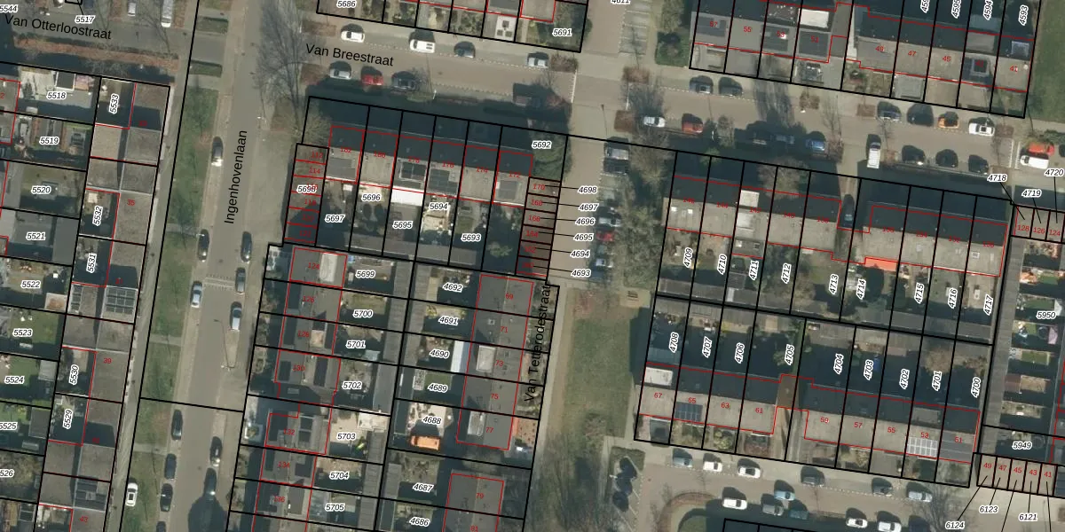 Van Breestraat 160 is gelegen op kadastraal perceel TBG01S4693. Deze kadastrale aanduiding is uniek en wordt gebruikt door het Kadaster om eigendomsrechten en andere zakelijke rechten vast te leggen. Het perceel maakt onderdeel uit van de kadastrale gemeente Tilburg.