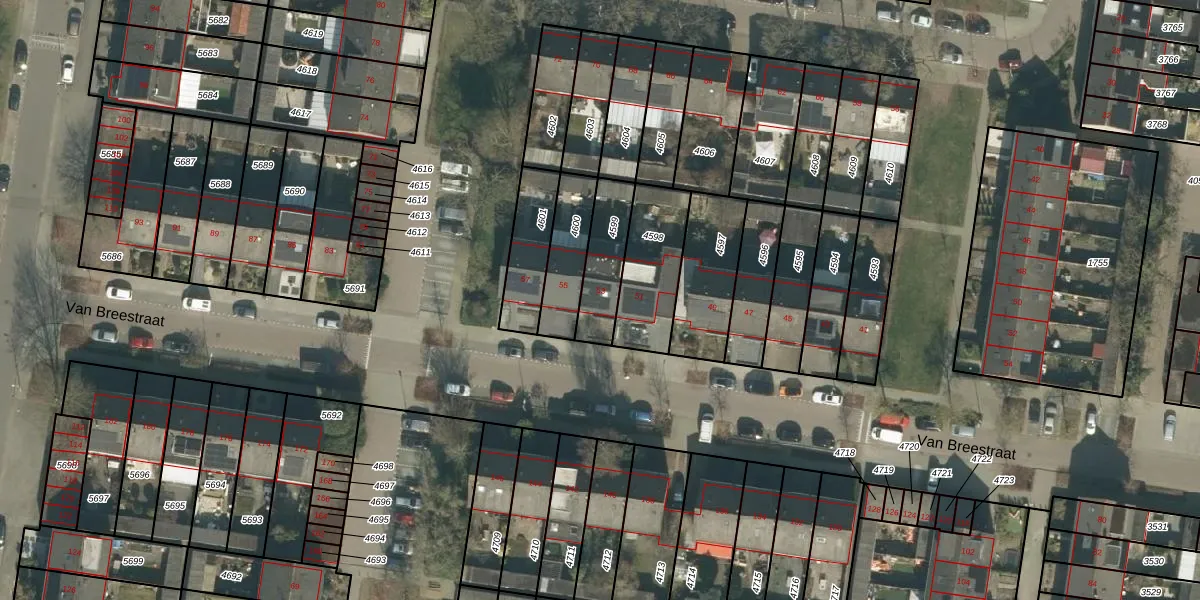 Van Breestraat 53 is gelegen op kadastraal perceel TBG01S4599. Deze kadastrale aanduiding is uniek en wordt gebruikt door het Kadaster om eigendomsrechten en andere zakelijke rechten vast te leggen. Het perceel maakt onderdeel uit van de kadastrale gemeente Tilburg.