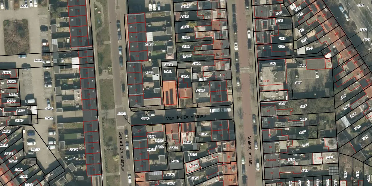 Het perceel waarop Van der Doesstraat 1 staat heeft een oppervlakte van 182 m². Dit is een middelgroot perceel. De perceeloppervlakte wordt geregistreerd door het Kadaster. Gedetailleerde informatie over de maten van dit perceel kunt u vinden in het rapport Kadastrale kaart met maatvoering van Van der Doesstraat 1.
